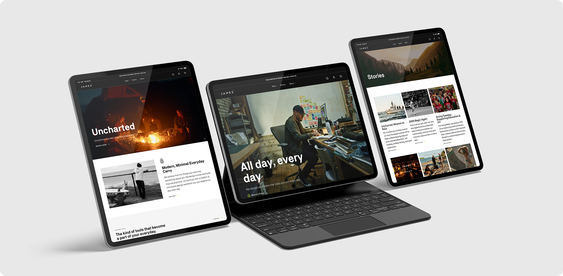 The James Brand is a premium lifestyle brand focused on modern everyday carry (EDC) tools, such as knives, pens, and accessories. The website needed to communicate quality, craftsmanship, and minimalism while offering a seamless e-commerce experience for users passionate about well-designed utility gear.